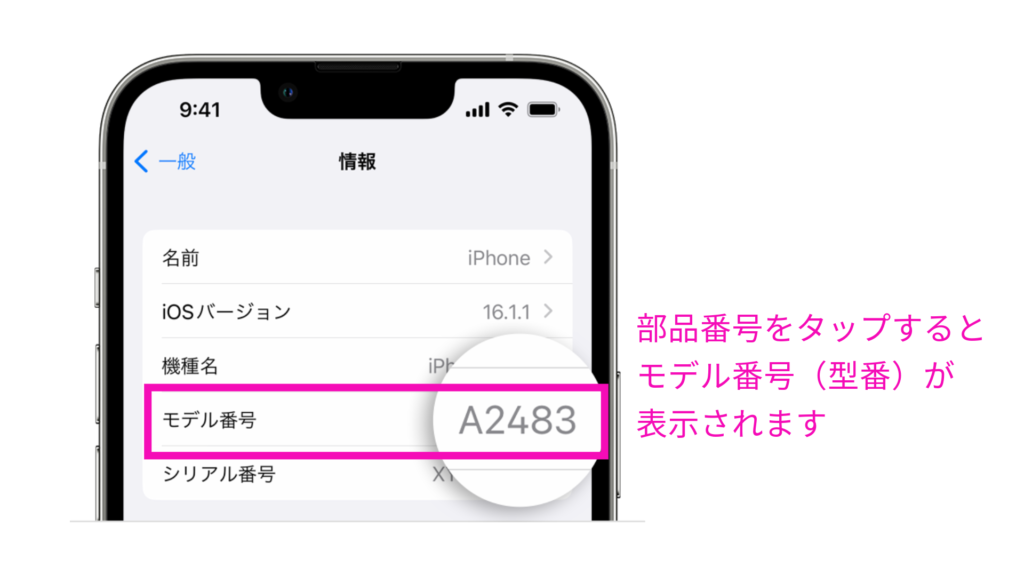 参照:Apple公式:iPhone、iPad、iPod touch のモデル番号を調べる